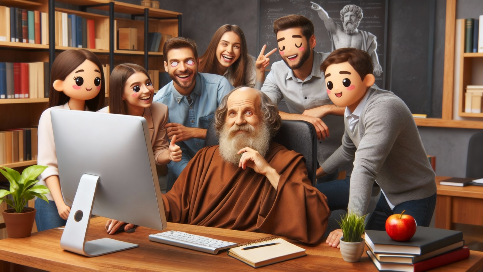 Sådan kan det se ud, når en filosofisk konsulent bevæger sig ind på dit kontor.... han er vellidt og vis; han spreder glæde og folk beundrer ham... hans blotte tilstedeværelse forbdrer trivsel mærkbart.